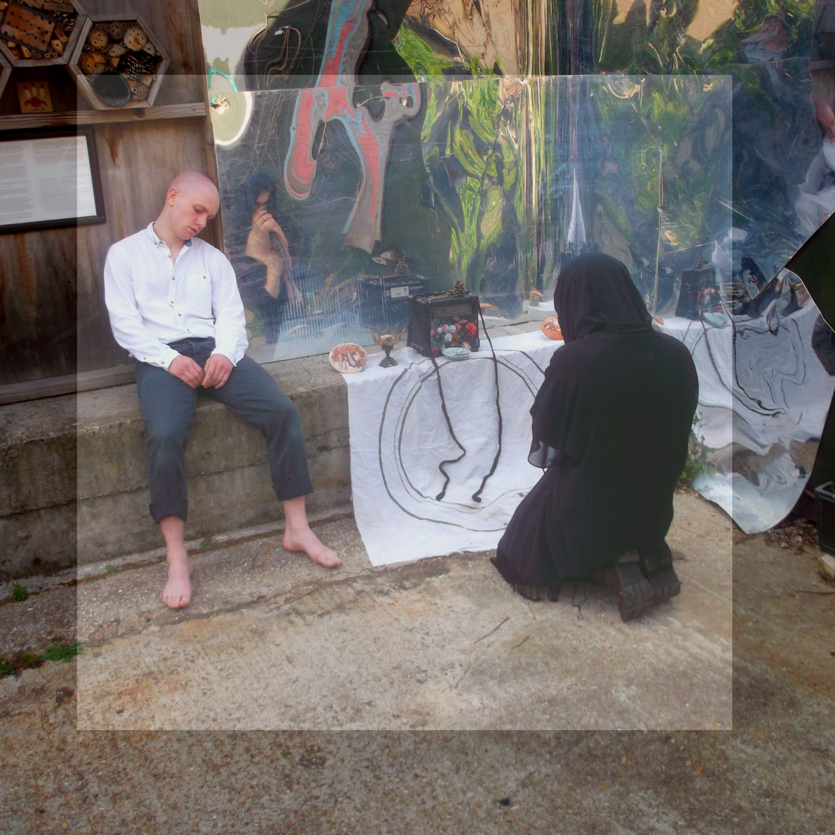 The sounds were crafted live and improvised in a durational ritualistic action, taking the natural sounds of the garden, the industrial sounds of local transport, the flowing story of the guided tour and the overwhelming aura of death and solemn remembrance as their focal starting point - conjuring and channeling something embedded within this origin, yet daydreaming beyond it.